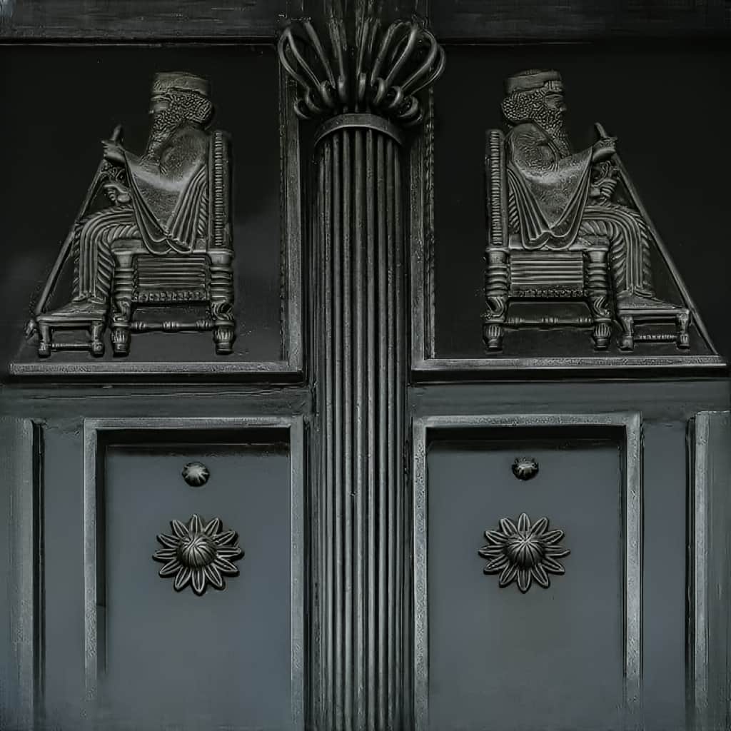 طرح درب شامل نقوش سربازان و المان های معماری هخامنشی است که حس اقتدار را القا می کند. |